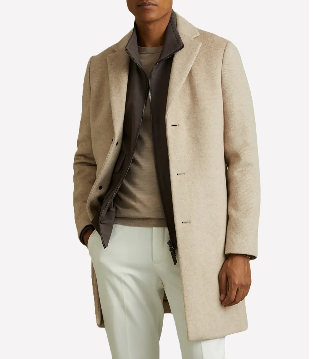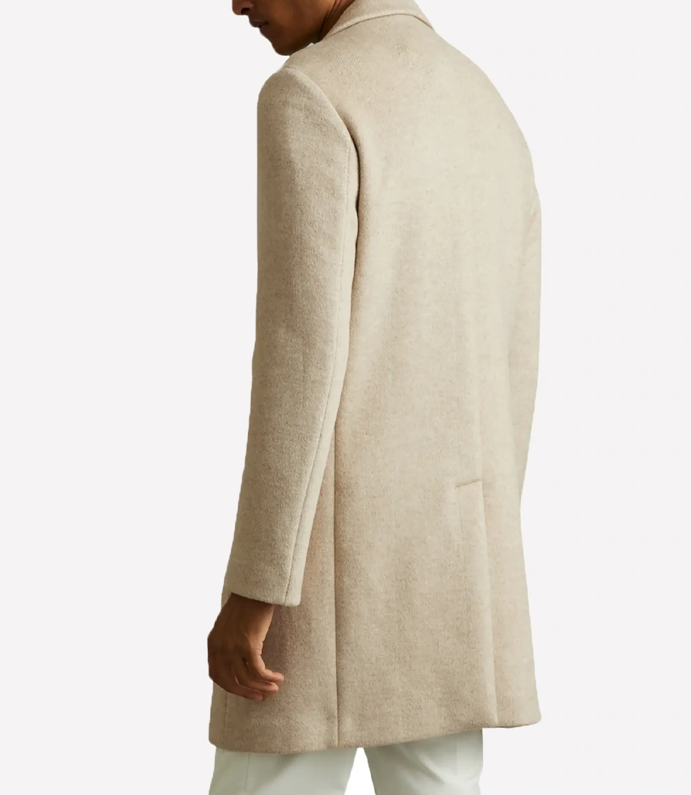 Palm Knits Wool Blend Beige Overcoat For Men’s
